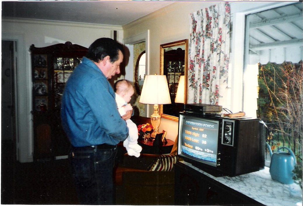 1987 - Rob introducing granddaughter Katie to the Financial News Network