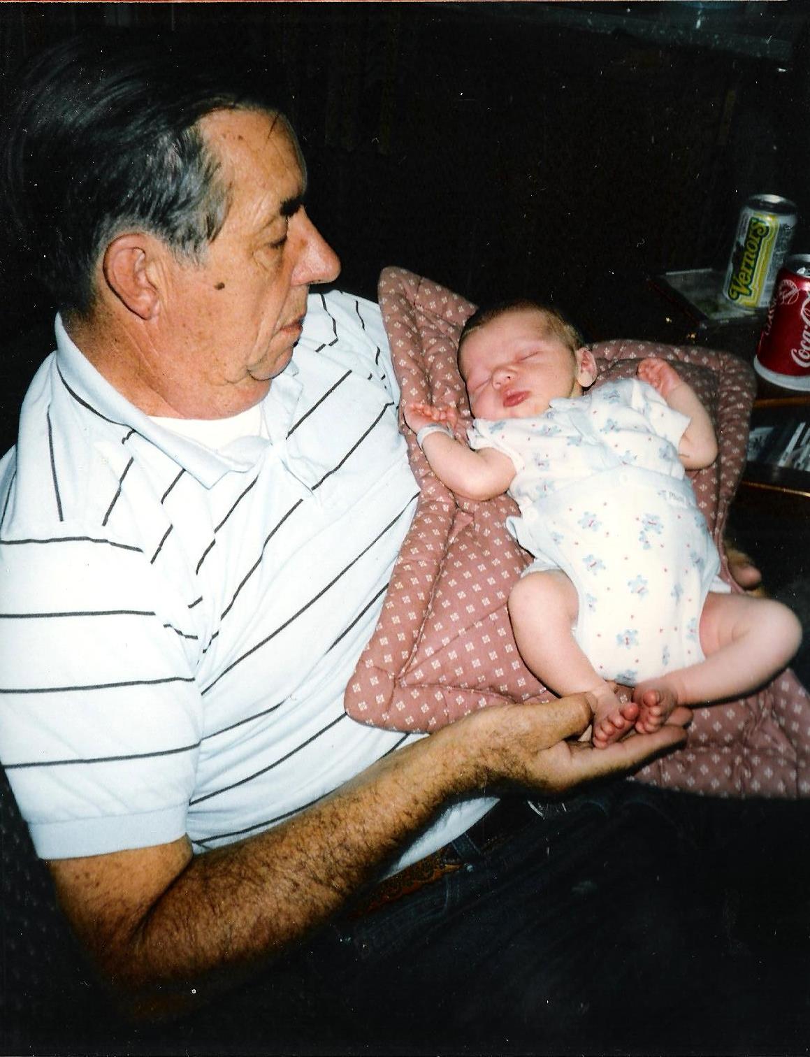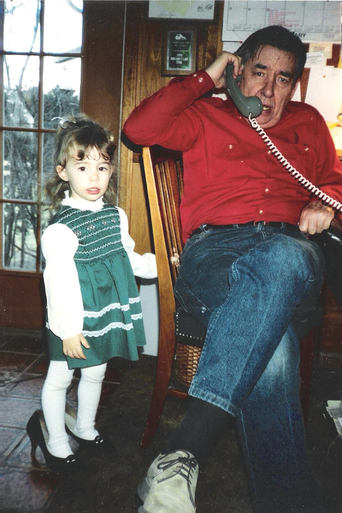 1990.. granddaughter Katie, in high heels, and Rob.jpg