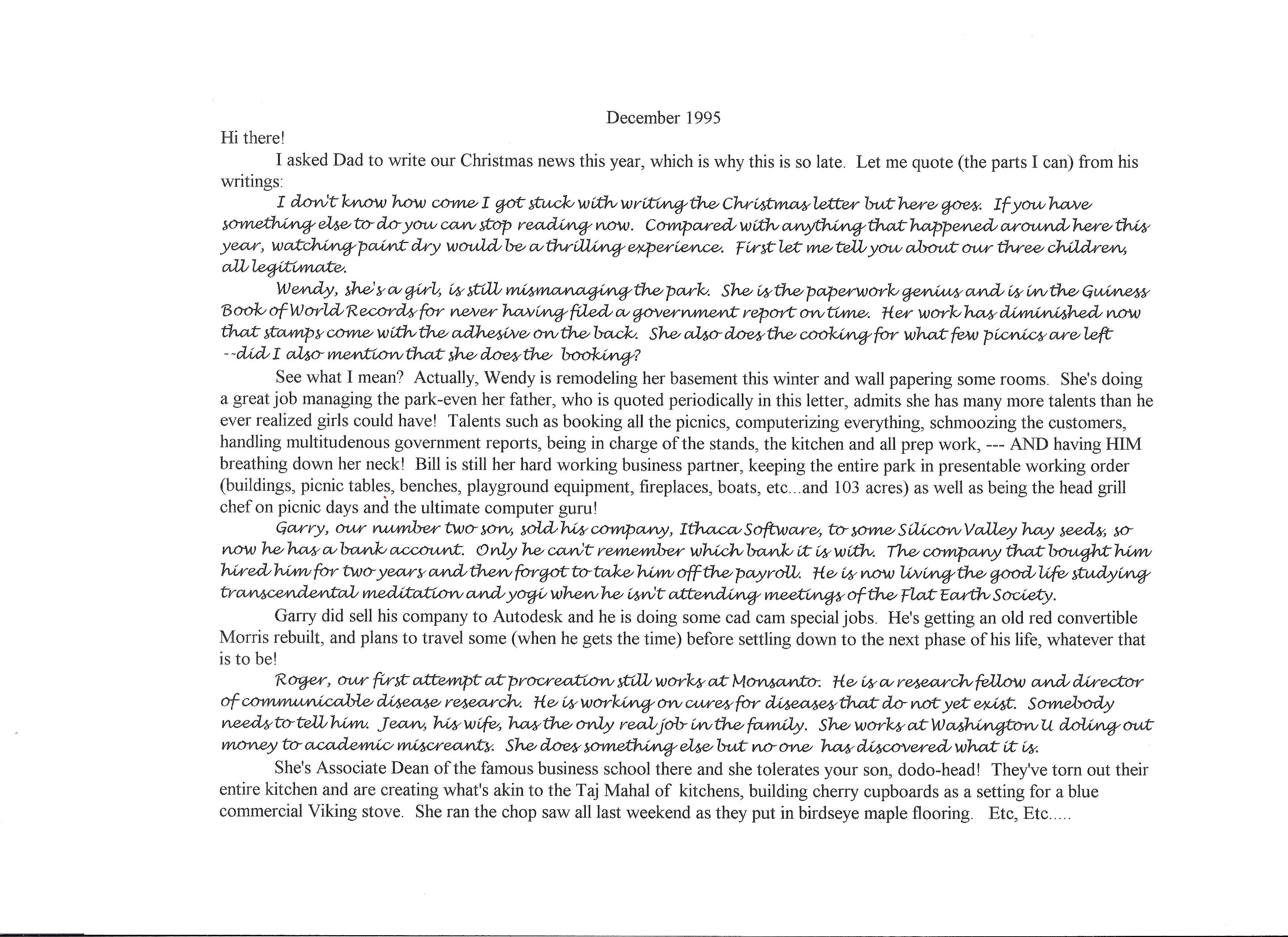 1995 - Wendy and Rob draft Christmas letter - page 1