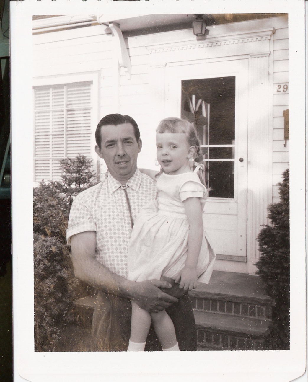 1962 - Robert, with one of those bolo ties, daughter Wendy, at the original house at 29520 Sylvan Drive, Willowick