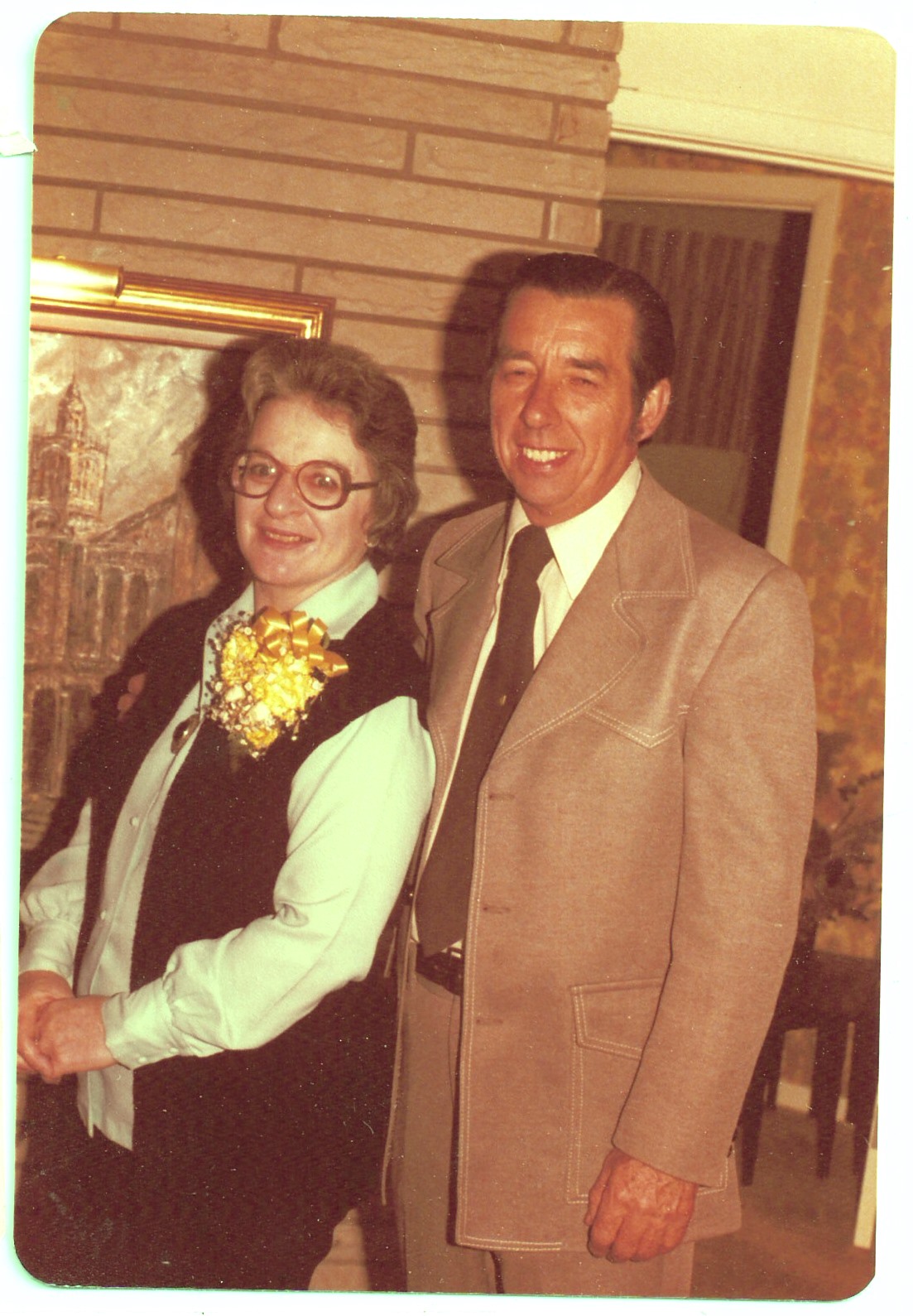 1974 - Rob, awful black glasses, unusual plaid pants, and Wendy.jpg