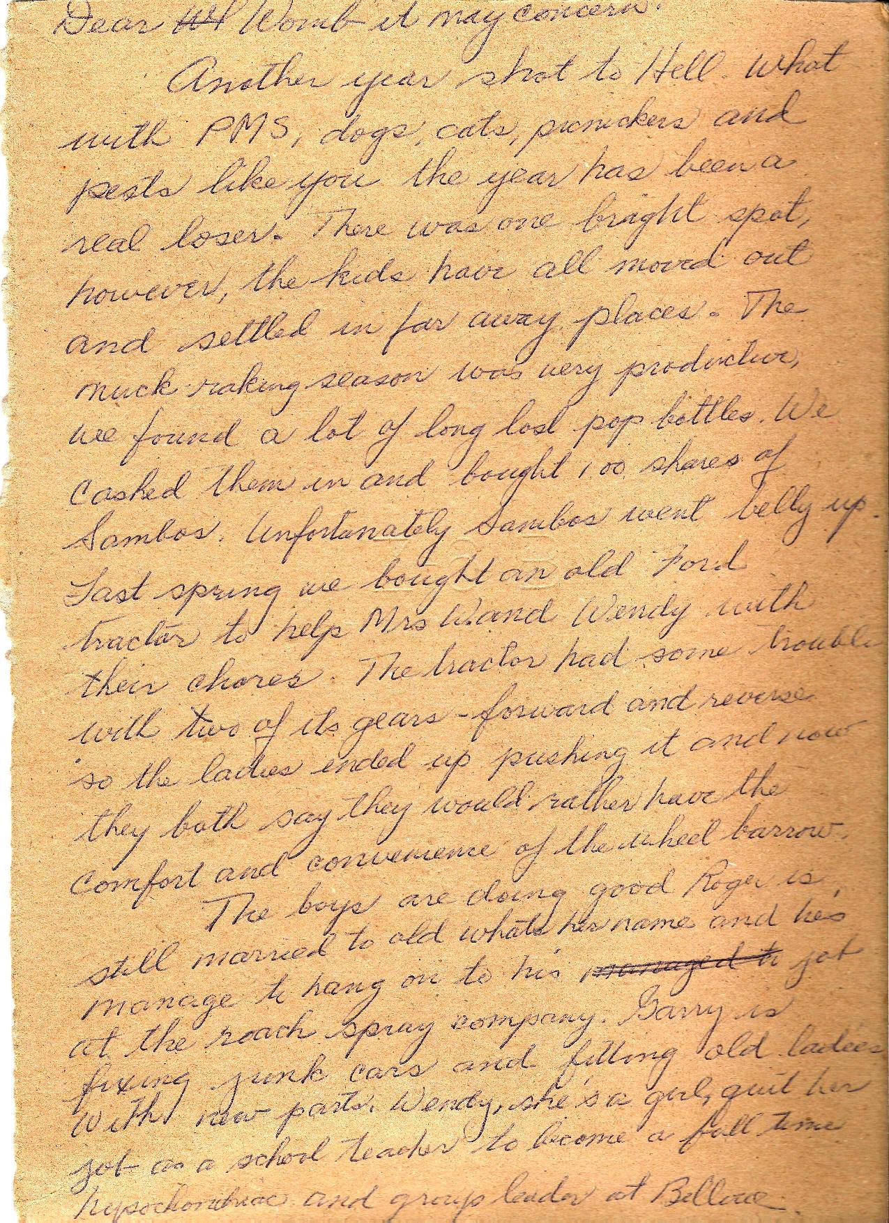 1982 - 'To Womb It May Concern' - Christmas letter by Bucky - transcription